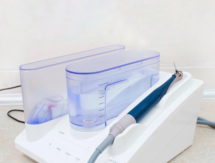 Для її проведення в нашій стоматології використовується спеціальне сучасне обладнання – ультразвуковий апарат EMS Piezon (Швейцарія), який дозволяє ретельно очищати зуби навіть у важкодоступних місцях, не пошкоджуючи емаль і забезпечуючи комфорт під час процедури.