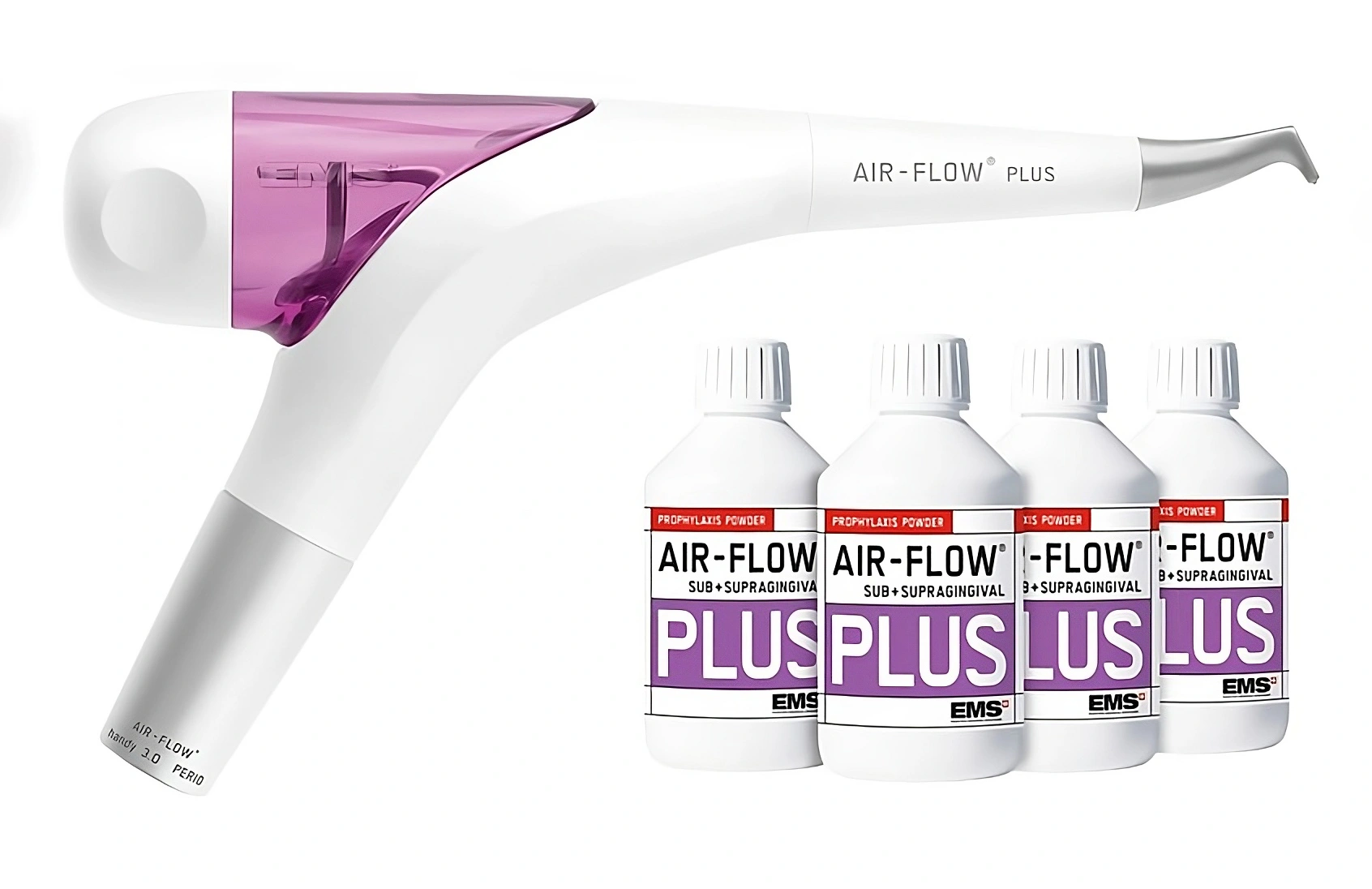 Аква-пневмокінетична обробка дозволяє ефективно видаляти немінералізовані зубні відкладення з над’ясенних поверхонь зубів, композитних реставрацій, імплантатів, у ділянці незнімних ортодонтичних конструкцій, а також очищати під’ясенні ділянки коренів зубів та імплантатів на глибину до 4 мм.